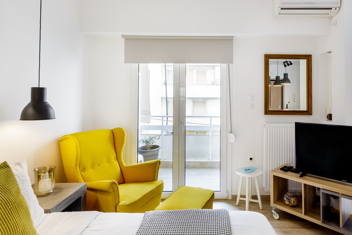 A very unique and aesthetically pleasing 50m2 studio, in a walking distance from Acropolis & all the archaeological sights. Equipped with indoors jacuzzi, fastWiFi, A/C, NetflixTV, double glazing, fully equipped kitchen, and a cute garden-view balcony to make your stay unforgettable! Located in a safe and vivid neighbourhood with direct access to all public transport and surrounded by local restaurants, cafes and shops. Best place to relax after a busy day of exploring beautiful Athens!